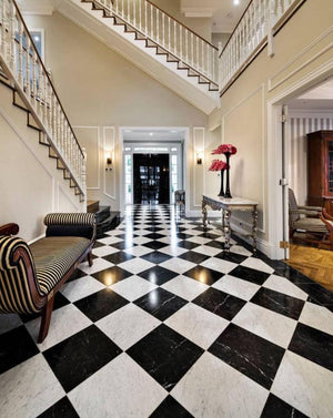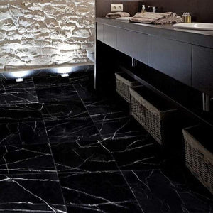 Step into a world of dramatic elegance with Nero Marquina, a stunning Spanish marble known for its bold character. This luxurious marble tile features a deep black background, beautifully contrasted by striking white veins, creating a captivating visual impact in any space. Ideal for those looking to make a statement, Nero Marquina is perfect for creating an eye-catching checkerboard wall or floor pattern, especially when paired with a lighter marble likeĀ Bianco Carrara. This combination of Nero Marquina with a lighter natural stone not only offers a classic aesthetic but also adds a contemporary twist to any design. Whether used in residential or commercial settings, Nero Marquina marble floor tile is a testament to sophisticated style and timeless appeal. Embrace the allure of this classic Spanish marble and transform your space into a showcase of opulent design and unmatched elegance.
