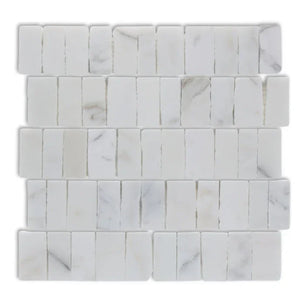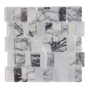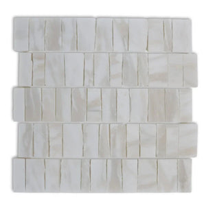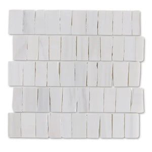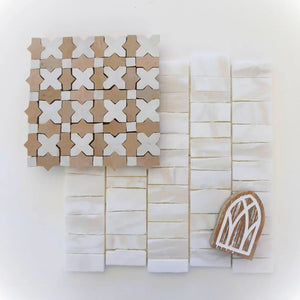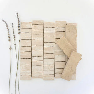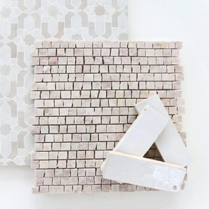 PAVE redefines natural stone with raw elegance and timeless appeal. Crafted from marble and travertine, each mosaic showcases hand-chiseled edges and a honed finish that highlight the material’s organic texture.