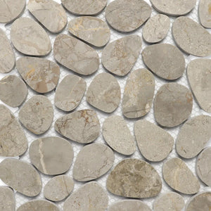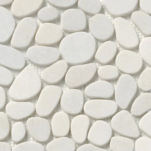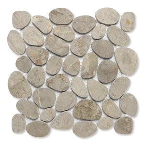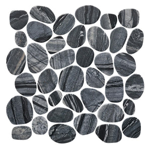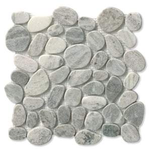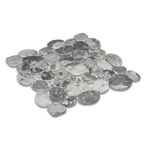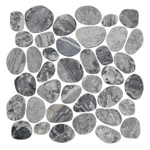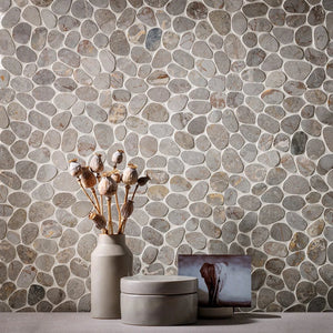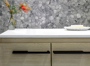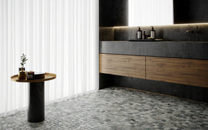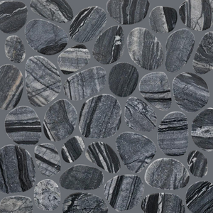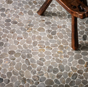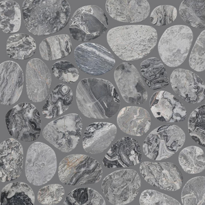 SPINDRIFT interlocking tiles combine the comfort and class of a flat, matte mosaic with the eye-catching shapes and organic style of stone pebbles. The result is a sleek and striking interpretation of nature's raw appeal.