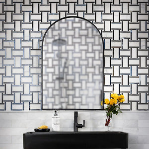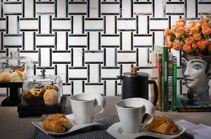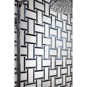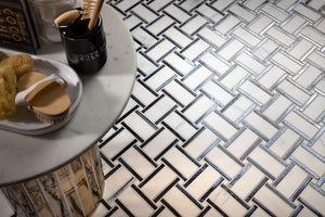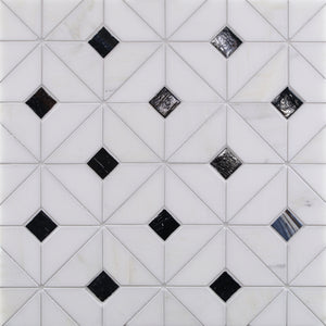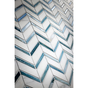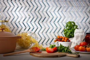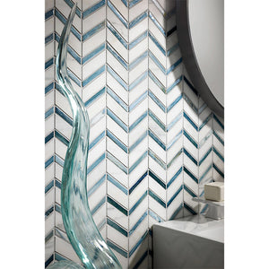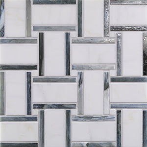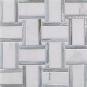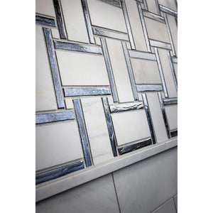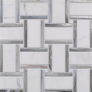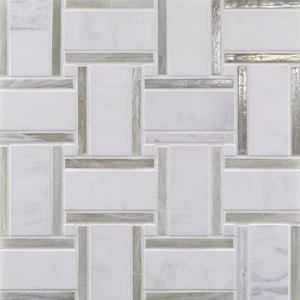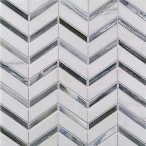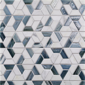 VESUVIO is available in many patterns such as linear mosaics, basketweave mosaics, quilt mosaics, and geometric triangular mosaics. Beautiful, striking colors of glass combined with white marble create vivid and unique patterns.