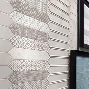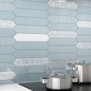 Update your space with our transitional collection of ceramic picket tiles. DELANEY comes in 5 colors, coordinating quarter-round trim pieces, and 2 unique decor pieces in a variety of patterns.