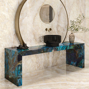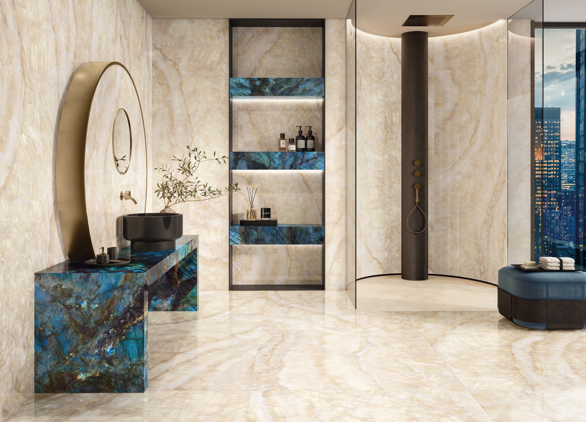 Porcelain slabs and panels enable the creation of porcelain countertops and backsplashes for kitchens and bathrooms, worktops, tables, doors, seamless covering solutions for floors and walls, and other elements, including for outdoors. ELEVATED slabs are the ideal raw material for porcelain countertop creations that elevate quality of life to the status of a masterpiece.