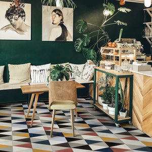 VEGAS cement tile is anything but a gamble. In fact, it’s a surefire way to win the interior design jackpot. Sleek triangles come together to form a vibrant look that’s especially striking as a random mix. Available in 5 winning color combinations. VEGAS must be sealed with DryTreat Sealer.