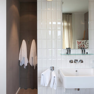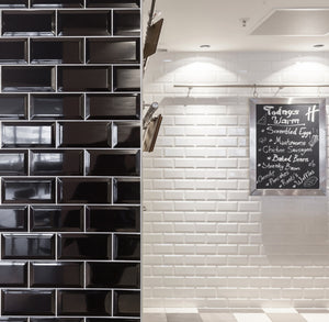 The CLASSICS TROCADERO collection consists of glossy wall tiles with a facet edge in black and white. The diagonal edges on these glossy metro tiles subtly reflect the light, creating an authentic space with a luxurious look.