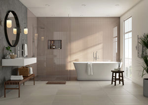 DIXON presents endless opportunities to design with subway tiles. Combining a soft earth tone palette with glossy, matte, and wavy ripple-textured subway tiles yields infinite options for patterns and originality. A stretched subway tile design is great for contemporary spaces and makes for a refined backdrop to any room.