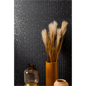 FITZ ceramic wall tile features an intricate design inspired by artisan metal embroidery, with strips running in varied directions to create dynamic movement. Its textured illusions and metallic finishes offer a striking, modern aesthetic, while the large 12” x 36” format adds boldness to any interior. Available in two decos, Tetris and Zig, FITZ is perfect for dry indoor residential and commercial wall applications, delivering contemporary elegance that’s impossible to resist.
