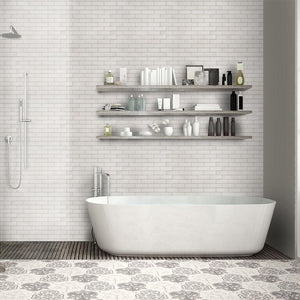 ALIGN features clean lines and geometric shapes in three distinct natural stones. ALIGN spaces around these pure and playful tile patterns for fresh and timeless designs.
