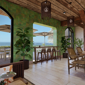 PEPPY embodies the rich heritage of Moroccan craftsmanship, with each tile handcrafted from natural clay and fired in traditional kilns. Its irregular edges, vibrant color variations, and shimmering surface create depth and dimension, making it a striking choice for walls, backsplashes, shower floors, and light-traffic residential flooring. Water-resistant and durable, it is perfect for kitchens and bathrooms, while its timeless appeal enhances both modern and traditional spaces.