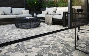 RANDOM PEBBLE mosaic tiles combine the comfort and class of a flat, matte mosaic with the eye-catching shapes and organic style of stone pebbles. The result is a sleek and striking interpretation of nature's raw appeal.
