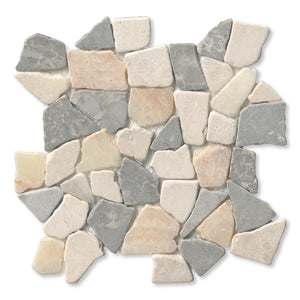 Type: Natural Stone Item Code: 48110010084 Description: Large Random Astoria Tumbled Mosaic (17.75 x 17.75 2.18sf/sheet) Availability: Special Order Lead Time: 3-4 weeks Purchase By: SF - $38.70, 1.0 sq. ft.