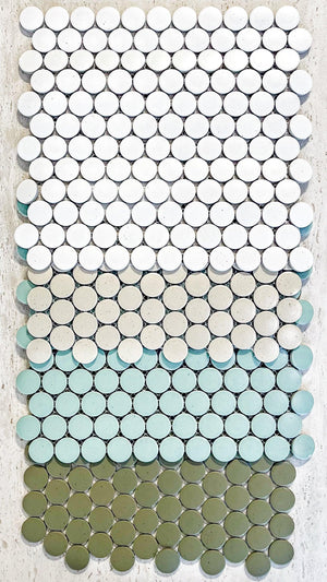 Type: Porcelain Item Code: 41510033503 Description: 1.25 Modhaus Salt Matte Discs Mosaic (13.3x12.2 - 1.124 sf/sheet) Availability: Special Order Lead Time: 3-4 weeks Purchase By: SHEET - $16.25, 1.0 sq. ft.