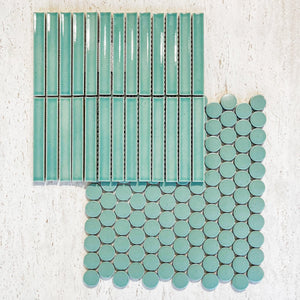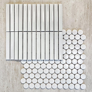MODHAUS porcelain tile mosaics combine sleek geometric shapes with clean lines, infusing mid-century charm into contemporary, modern, and transitional spaces. Glossy concave bars and matte oversized discs offer an artistic twist, from statement walls to updated penny round-inspired designs. Versatile in application, MODHAUS enhances floors, walls, and kitchen backsplashes with a stylish mix of shapes and colors, delivering timeless elegance and standout design.