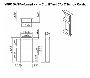 HYDRO BAN PREFORMED NICHES are a component of the expanded HYDRO BAN line of waterproofing products that allow for high quality rapid shower installations. HYDRO BAN Preformed Niche is constructed of lightweight high-density expanded polystyrene with a waterproof finish and is ready to tile. A prefabricated shower niche saves on labor needs.Available in Sizes: 12x12, 12x12x6, 8x12x6, 12x29