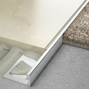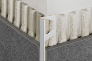 SCHIENE is designed to provide edging for tile coverings on floors. Typical applications include edge protection where tile is bordered by carpet, at expansion joints, or as a decorative edging for stairs. SCHIENE features a 87° sloped vertical wall section that transfers point loads to the substrate and surface covering while protecting tile edges from damage.