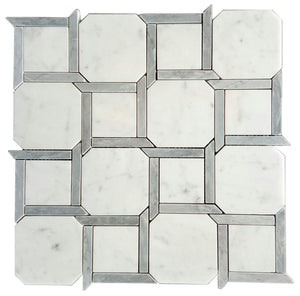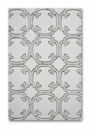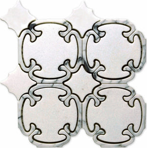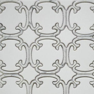 Type: Natural Stone Item Code: 54611742158 Description: Brocade Thassos + Carrara Venatino Polished Calligraphy Waterjet Mosaic (8.9x9.9 - 0.55 SF Sheet) Availability: Discontinued Lead Time: 1-2 days Purchase By: SHEET - $27.71, 1.0 sq. ft.