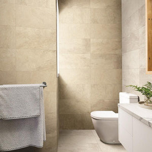 AMELIA incorporates an earthy coastal design feel reminiscent of the Amelia Island shoreline. AMELIA porcelain tile offers a modern color palette of neutral tones for its popular 12"×24" size.