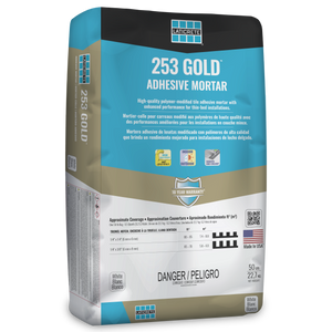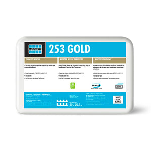 253 GOLD is a superior polymer fortified bagged cementitious thin-set powder to be mixed with water to install ceramic tile and natural stone using the thin-set method of installation.