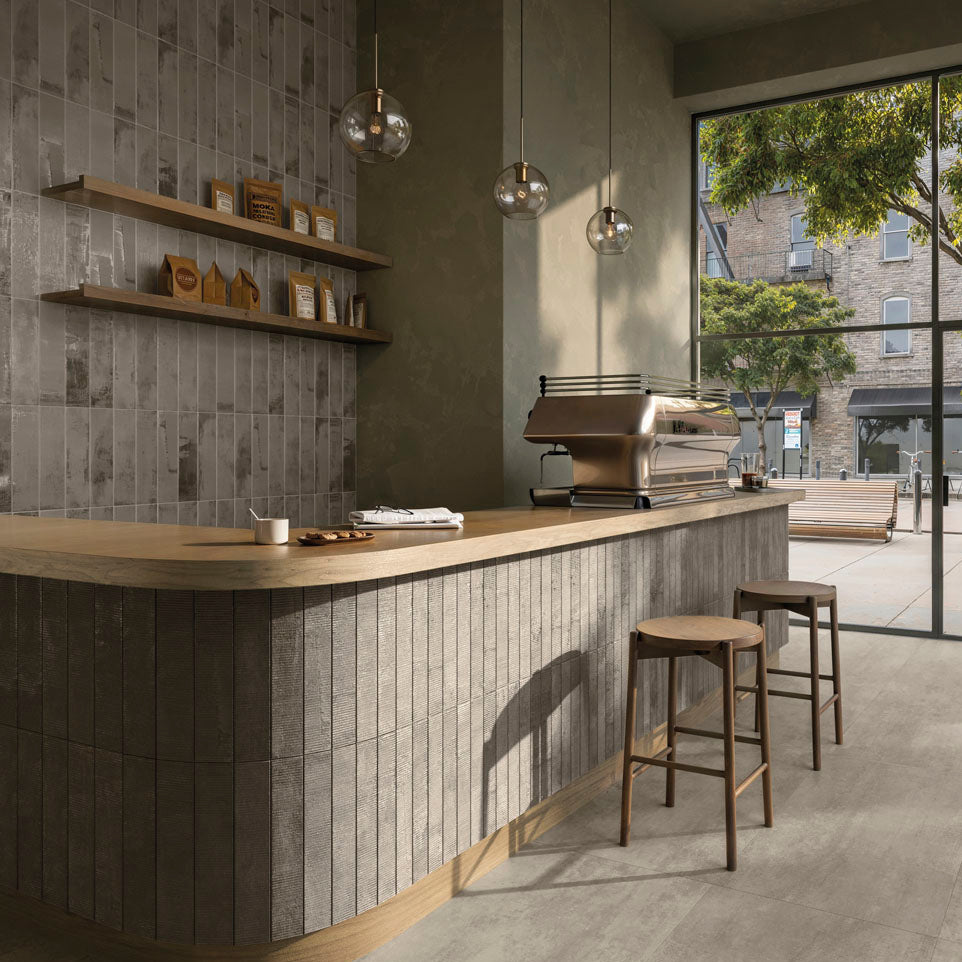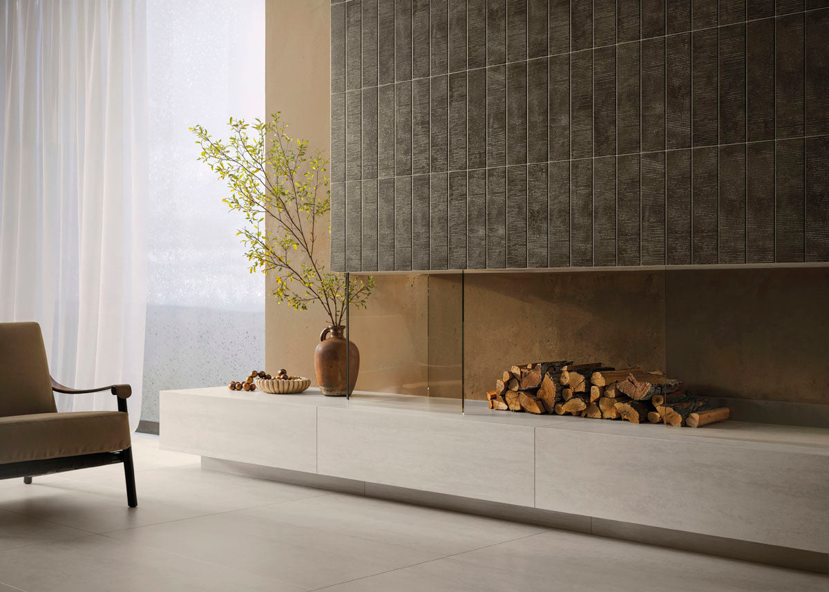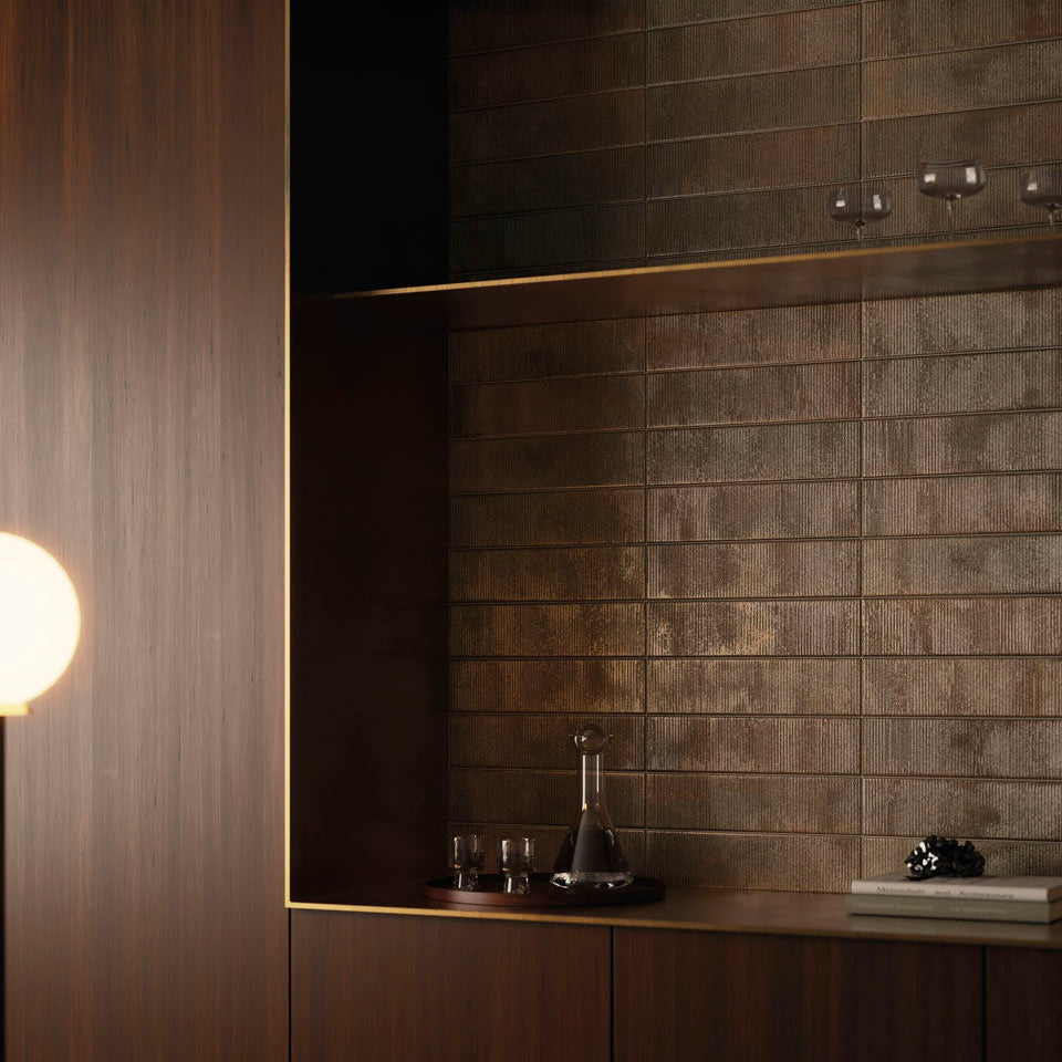 ALLOY brings an urban edge to interior walls, channeling the raw strength of industrial materials with metallic texture and refined imperfection. This ceramic wall tile comes in a bold 4x16 format with smooth and dimensional relief finishes that play with light and shadow. With four modern tones and 54 varied faces across field and deco pieces, ALLOY suits both residential and commercial interior dry spaces, creating expressive, contemporary environments.