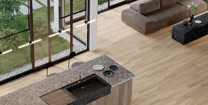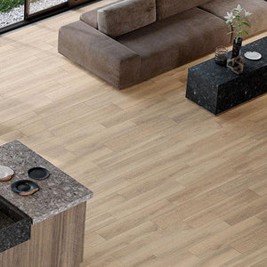 OXFORD glazed porcelain tiles feature the beauty of natural wood in two warm colors.