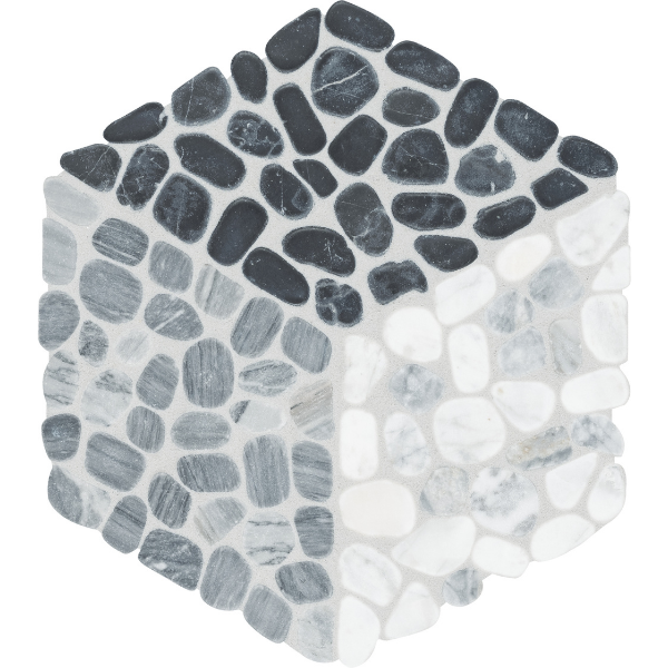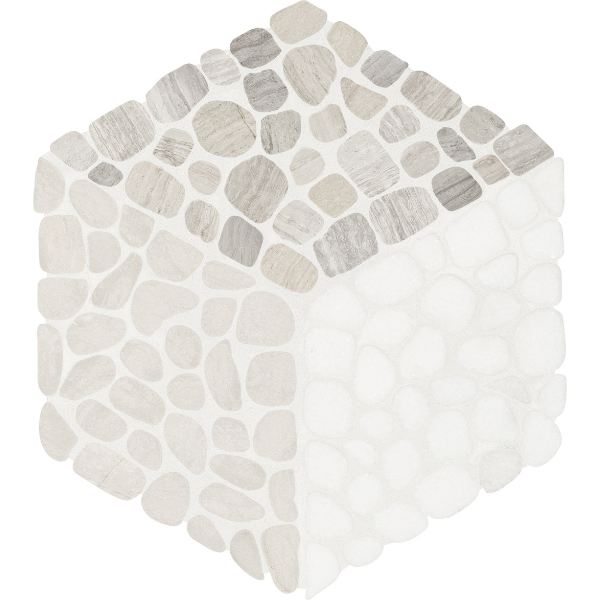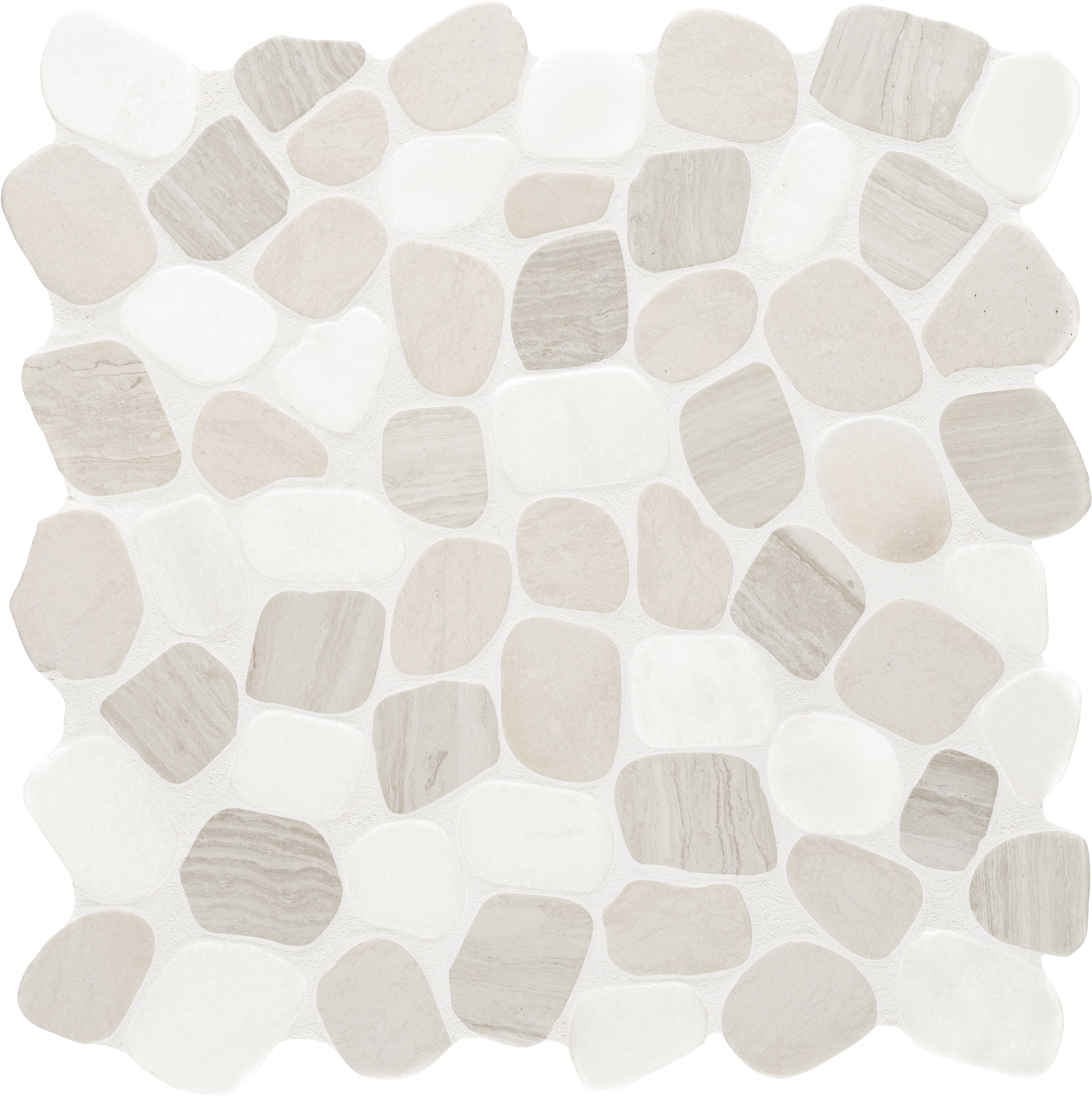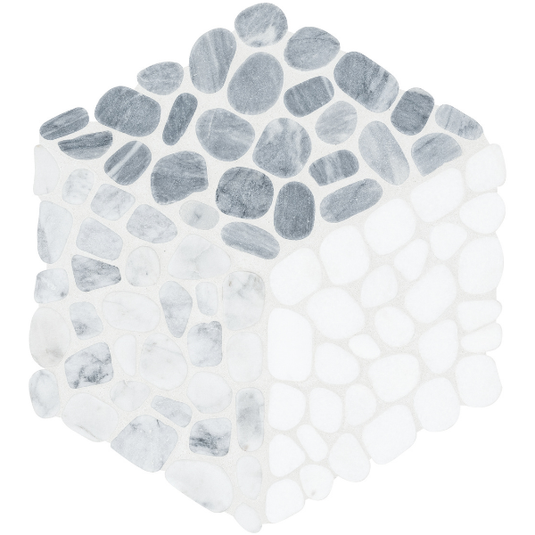 LOWTIDE is a collection of natural stone pebble mosaics designed to elevate both interior and exterior tile applications. Available in four distinct color ways and four versatile formats, LOWTIDE brings a harmonious, organic texture to any setting.
