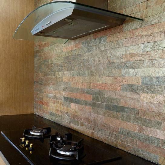 When the slate is gauged, it has been modified on one side, creating consistent texture and thickness for ease of installation. Slate Tile sourced from Brazil has the lowest natural tolerance of thicknesses from piece to piece, with India in the middle and China with the highest variation from piece to piece. This is shown in the price, as Brazilian slate is higher priced. Lower-priced tiles can be more expensive to install. Read more about slate in our blog: A Clean Slate: How Rough Slate Can Have a Clean Aesthetic.