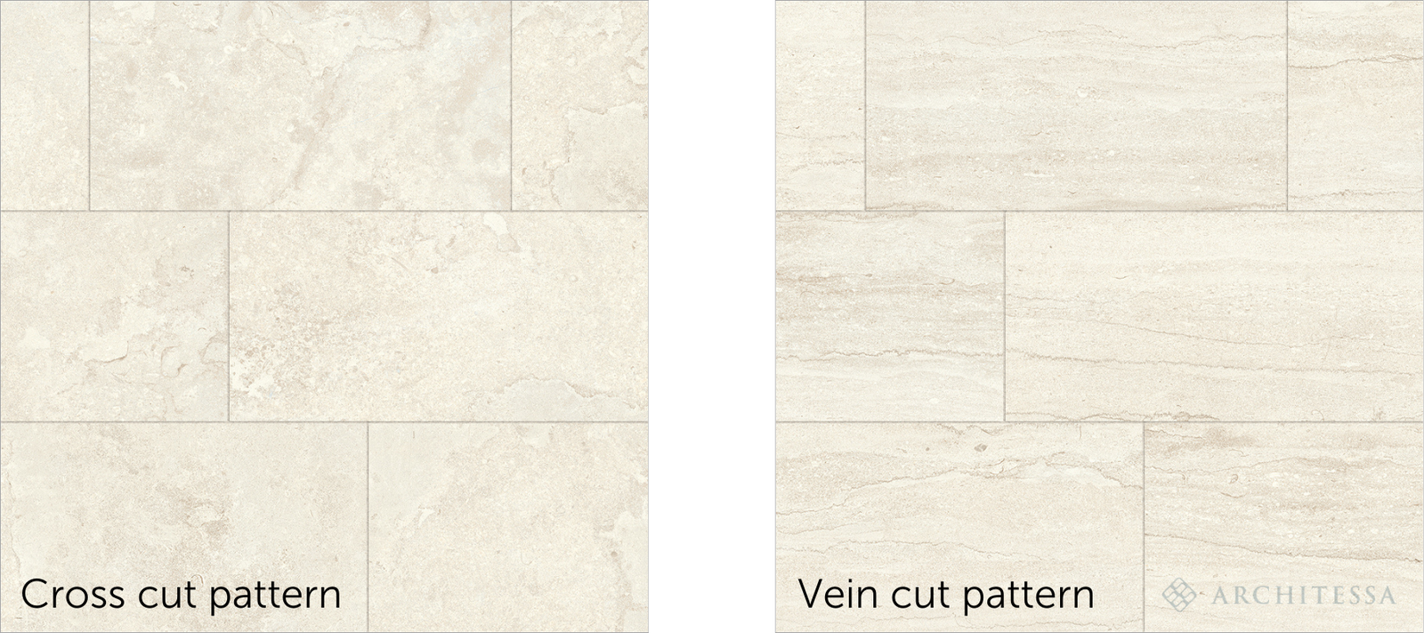SEE THE GRAPHIC BELOW SHOWING THE DIFFERENCE BETWEEN CROSS-CUT AND VEIN-CUT TILES.