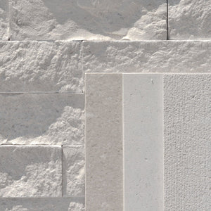 Design your project like a Pro with ALLCLAD LUNA, a natural limestone available in six different finishes, offering endless refined possibilities. ALLCLAD LUNA adorns white and taupe hues, made from the compressed White Sand Beaches of Mexico, replete with exciting fossil formations. Sandblasted and Brushed finish suitable for exterior applications. All finishes are 7lbs per square foot, except splitface finish is 14 lbs per square foot.
