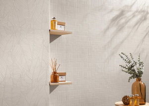 Elevate your interior design with the sophistication of APLOMB decorative wall tiles. These exquisite tiles are distinguished by delicately shiny, tone-on-tone patterns that emerge from their smooth surface, creating captivating three-dimensional relief effects. Ideal for those seeking modern and balanced decorative solutions, APLOMB combines soft, delicate colors and light textures.