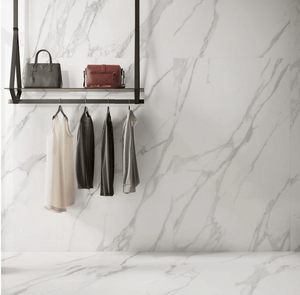 Matching Art House porcelain slabs/panels are found in our ELEVATED 12mm Collections in Calacatta Renoir color.