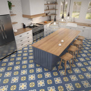 Please note, bright colors like blues and reds can be prone to fading if installed under direct sunlight. Cement tiles must be cleaned with a non-abrasive, pH neutral cleaning product. Highly acidic cleaning products will cause damage to cement tiles and should be strictly avoided. Avoid using mops or chemicals with abrasive grit, as this could damage the tiles. Avoid using bleach to clean tiles, as this removes the sealer and exposes tiles to staining. Sweeping or mopping tiles regularly will help ensure the durability of cement tiles. Depending on foot traffic, periodic resealing may be necessary. Scratches can be removed using 220 grit sandpaper. Please see the end of the brochure for additional information.