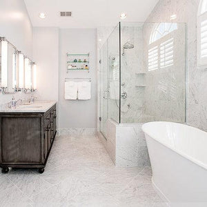 BIANCO VENATINO is a timeless Italian white marble with grey tones. It is similar to Carrara marble but has more defined grey lines. BIANCO VENATINO looks gorgeous in any foyer, bathroom, kitchen backsplash, or fireplace surround.