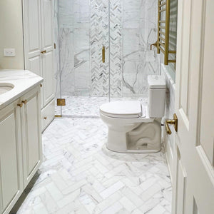 Learn more about CALACATTA GOLD and other natural stone in our Expert Guide on Marble & Natural Stone Tile 101.