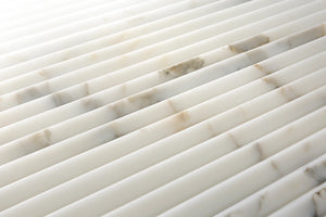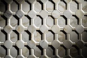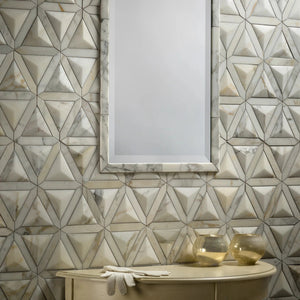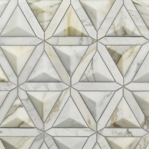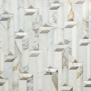Type: Stone Item Code: 25515113992 Description: Carved Calacatta Gold Polished Duomo Dimensional Mosaic (11x12.687 - 0.97 SF Sheet) Availability: Special Order Lead Time: 1-2 weeks Purchase By: SHEET - $128.62, 0.97 sq. ft.