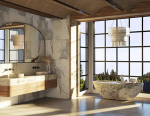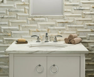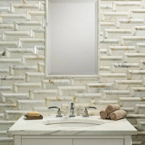 CARVED is a dimensional marble tile hand-carved for ultimate textural appeal. Create otherworldly designs that delight and surprise. Include the CARVED collection on walls for impressive results.