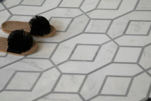 Type: Natural Stone Item Code: 82210059962 Description: Divine Dolomite & Bianco Carrara Lace Polished Waterjet Mosaic (10.44x12.68 - 0.92 SF/SHEET) Availability: Stock Lead Time: 1-2 days Purchase By: SHEET - $114.87, 1.0 sq. ft.