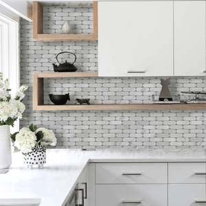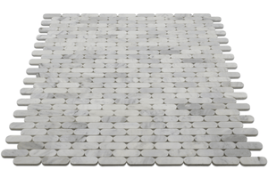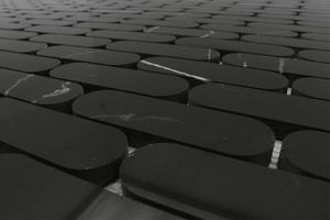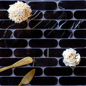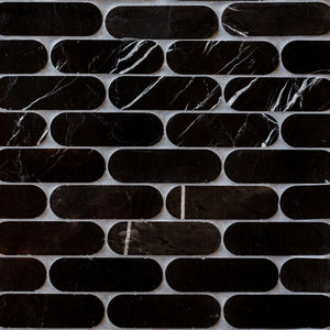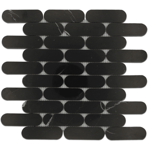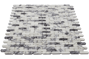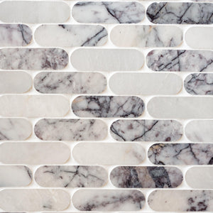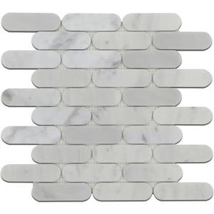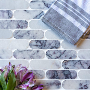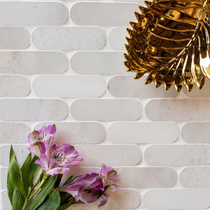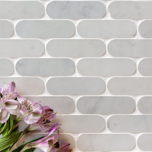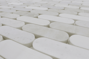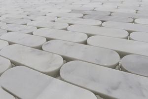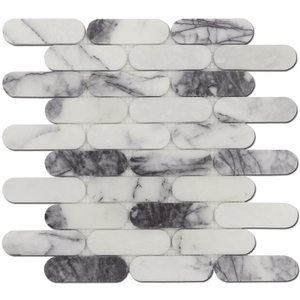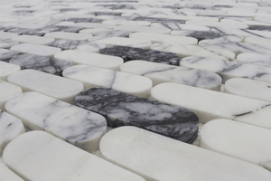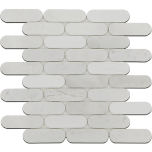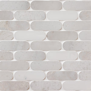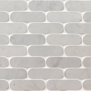 ECLIPSE is a capsule shaped polished natural stone mosaic that fuses a timeless marble with a vintage, yet fresh format.