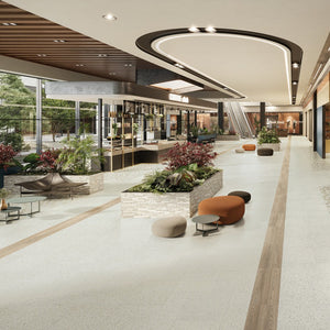 ELITE brings the elegance of the sown Venetian floors terrazzo look to the most contemporary settings. Faithfully reinterpreting the details of the flooring used in the most prestigious Italian architectures, ELITE creates a refined visual in modern spaces, with a delicate intertwining of chromatic variations.