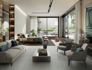 2cm Paver tiles also available in 24x24 size in Diamond White and Fashion Grey. View them on the FRONTIER20 TERRAZZO LOOK Collection.