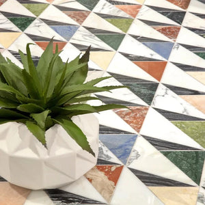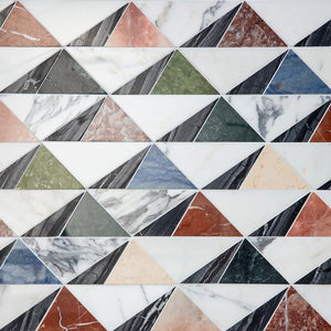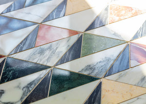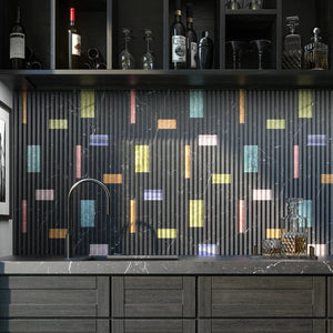 The FETE Collection is an innovative natural stone infusion of rich colors, geometric shapes, and fluted textures.