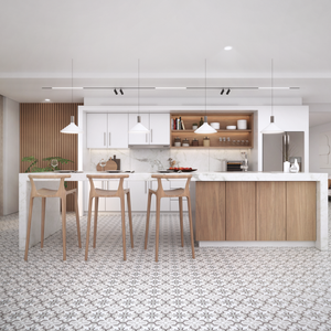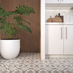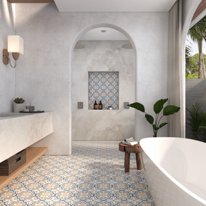 FLORENCE is a hydraulic pressed, handmade cement tile with a color layer of 1/8” thickness adhered to body of the tile using 1800 PSI. Composed of port- land cement, marble dust, and mineral pigments. Both beautiful & elaborate, our FLORENCE collection is a design masterpiece with a hint of decorative lace detailing. FLORENCE must be sealed with DryTreat Sealer.