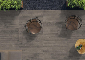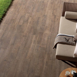Outdoor wood-look tiles balance the beautiful organic nature of wood planks with the durability, low maintenance, and versatility of outdoor porcelain paver tiles. FRONTIER20 Wood look paver tiles can be installed in any outdoor spaces, and depending on the installation method, can be installed as wood tiled patios, wood tiled decks, wood tiles over grass, or even as wood tiled driveways. This tile that looks like wood are actually 2CM porcelain paver tiles, perfect for outdoor floor applications. Slip resistance and resistance to chemicals, outdoor elements, and scratches is standard on all FRONTIER20 porcelain deck tiles.