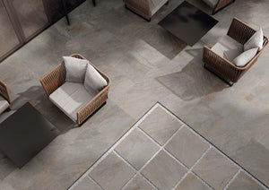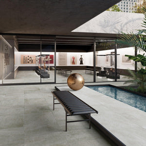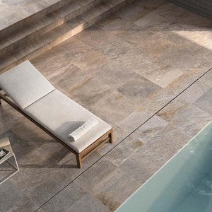 Outdoor stone patios, stone poolside tile, and stone walkways are a crucial component of design in landscaping, but can easily be substituted for stone-look porcelain tile pavers in many cases. FRONTIER20 stone-look paver tiles are designed for the outdoors - with incredibly durability & resistance to outdoor elements, sure to stand the test of time. These pavers are a great choice for stone tiled patios, stone tiled decks, stone pool deck tile, outdoor stone walkway tiles, and stepping stone walkways over grass, sand, or gravel. These tiles also work effortlessly with many indoor stone-look tiles, allowing for seamless indoor-to-outdoor installations, as illustrated on our Landscape Architecture page.