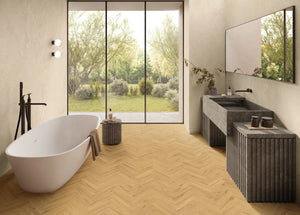 JENGA tile collection invites you to make every move count. A wood-look tile collection that's all about design in motion. Its sleek 2x12 planks offer endless ways to play-herringbone, basketweave, or classic offset-making it the perfect starting piece for a winning layout. Available in Light Oak, Pure Oak, and Intense Oak, each shade brings a warm, natural touch to both modern and traditional spaces.