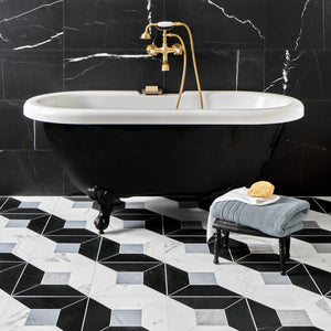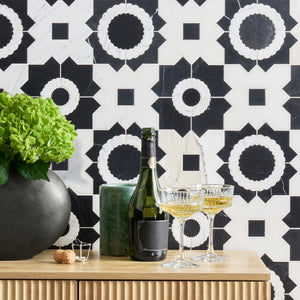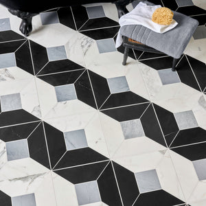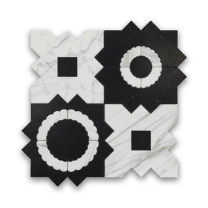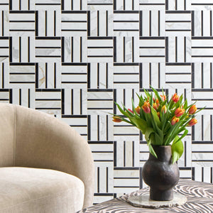 KALEIDOSCOPE brings the mesmerizing beauty of marble into your space with a captivating mosaic design. Crafted in collaboration with renowned designer Young Huh, this collection features Calacatta marble blocks accented by striking Tulip Black details. The intricate pattern weaves classic elegance with modern sophistication, making it a standout choice for any room. Elevate your interiors with KALEIDOSCOPE's unique blend of timeless style and contemporary flair.