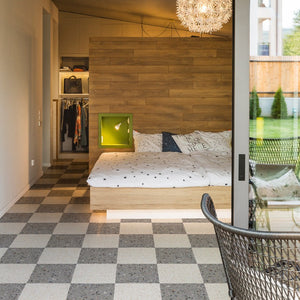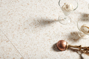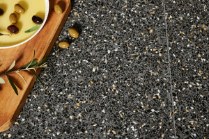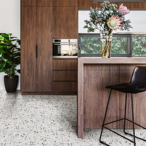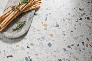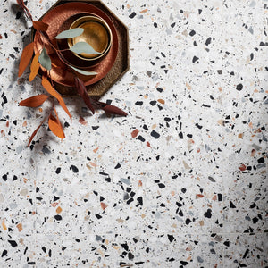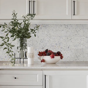 Discover the elegance of LA TERRAZZA terrazzo tile, authentically crafted in Italy, where centuries-old traditions blend seamlessly with the modern aesthetic. This genuine terrazzo tile is a masterpiece of design, featuring fine Italian marble embedded in a luxuriously honed cement body, offering a unique touch to any space. With 8 perfectly curated colors, ranging from sophisticated monochromes to warm beiges, each tile presents varying flake colors, patterns, and sizes. LA TERRAZZA embodies sustainability by recycling chips and remnants of marble and repurposing them into beautiful tile. LA TERRAZZA is an excellent choice for kitchen floor tile, bathroom floor tile, kitchen backsplash tile, and more!