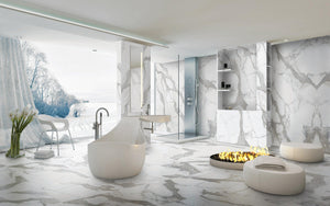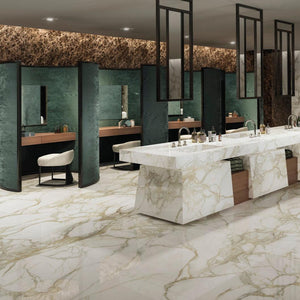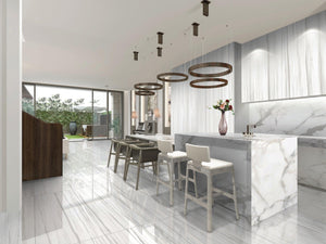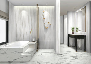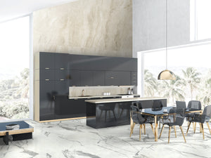 The MAESTRO porcelain slabs and panels collection offers six colors, from the classic Carrara look to deep shades of precious metal. The polished finish brings out the beauty of stone and highly reflects light to create the most luxurious interiors. MAESTRO makes it possible to create any contemporary and minimalistic style without losing its humbled luxury. MAESTRO 6mm porcelain slabs/panels are a great option for both residential and commercial spaces, and suitable for usage on multiple surface types. Create porcelain countertops or feature wall tile applications with MAESTRO.