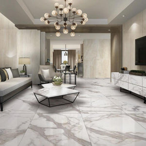 Type: Porcelain Item Code: 16110031868 Description: 30x60 Maestro Carrara Zebrino Polished 6 mm. Field Tile Availability: Stock Lead Time: 1-2 days Purchase By: CARTON - $354.58, 36.33 sq. ft.