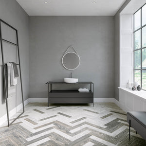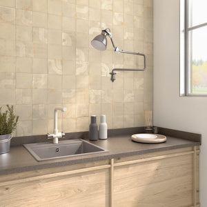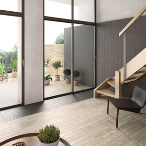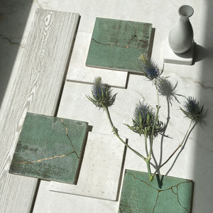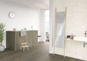 The MANTA series offers a 5x5 wall tile and decos that can be blended to create a rustic, yet elegant look. The coordinating wood-look porcelain floor tile is ideal to pair with the walls tiles for any interior space. MANTA is a collection inspired by rustic traditional Japanese design, featuring elements such as kintsugi and wabi-sabi.