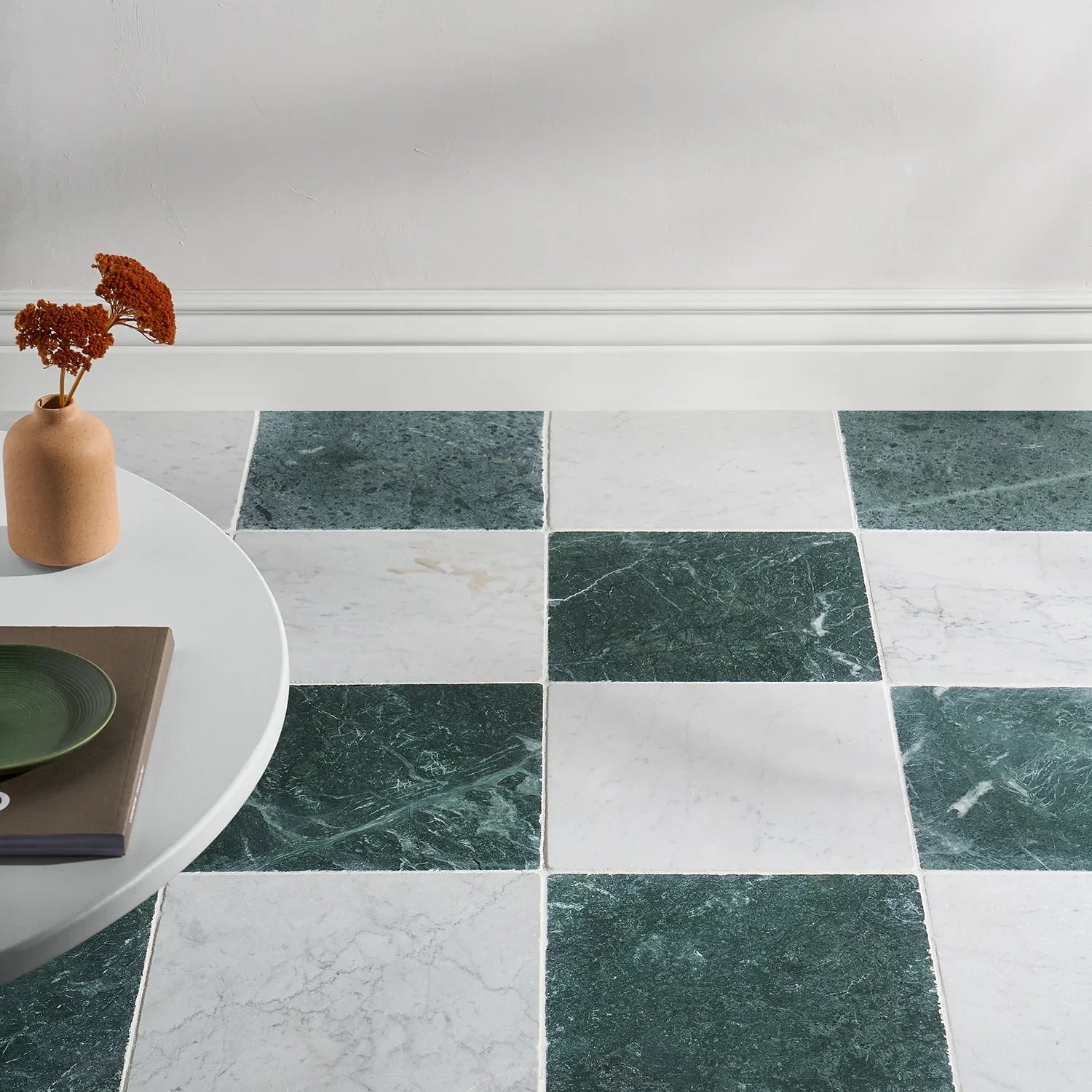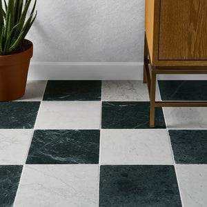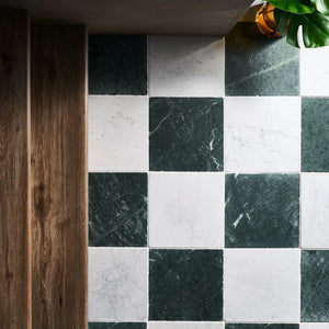 The MINA Collection pairs deep Verde Green and bright Bianco Carrara White marble in a classic square format with a soft tumbled finish for a warm, vintage feel. Designed for checkerboard layouts—whether grid, diamond, or offset—MINA brings a polished, natural look to entryways, bathrooms, and kitchens. Made from premium, hand-selected stone, it’s a timeless choice that blends old-world texture with modern versatility.