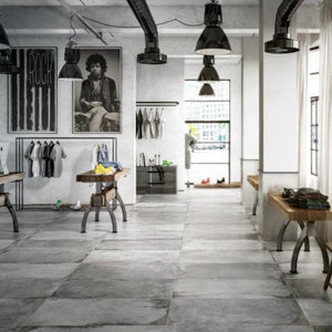 Named for the arid expanse of the Mojave desert, this porcelain’s distressed coloration evokes the painted landscapes of the American West. Allow MOJAVE to highlight floors and walls for industrial interior projects.